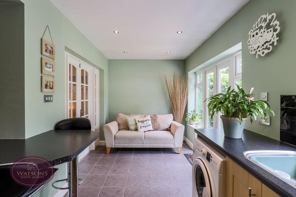 5.49m x 2.3m (18' 0" x 7' 7") UPVC double glazed windows and French doors to the rear garden, ceiling spotlights, radiator and tiled flooring.
