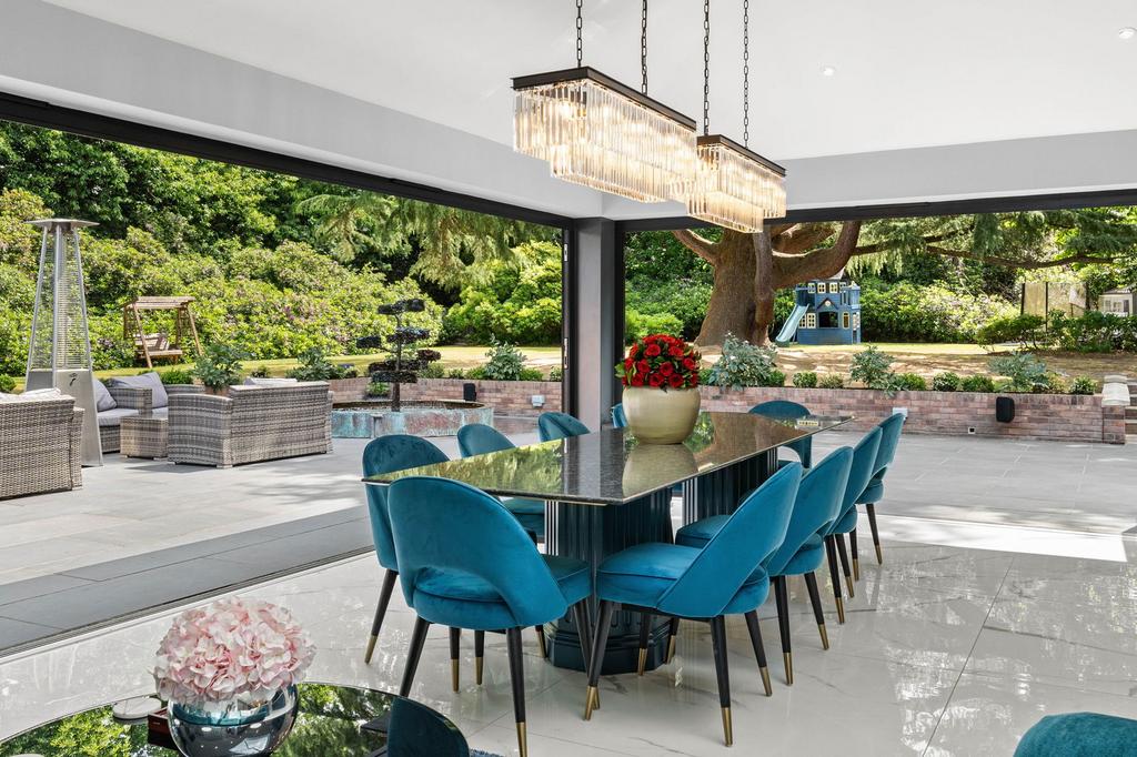 Step outside and enjoy the parkland style gardens which are manicured to perfection with mature trees, architectural features, extensive lawns stretching around the main residence and an orchard. The gardens provide the perfect backdrop for entertaining on the substantial paved sun terrace creating an excellent outside entertaining area around the family room region of the home with its bank of bi-folding doors.