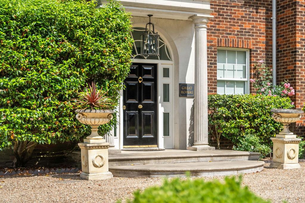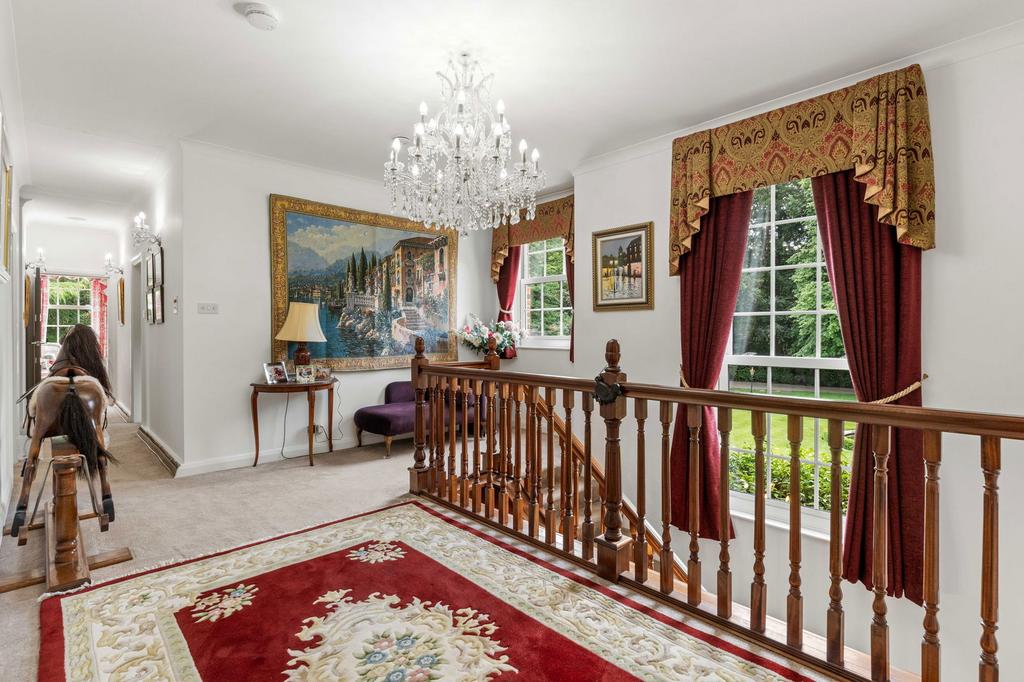 Approached from secure gates onto the sweeping circular carriage driveway the house makes a statement on arrival. The classically styled façade offers deep sash windows which provide elegance to the appearance and also flood the interior with natural light. Intricate brickwork and the classical portico entrance welcoming you.