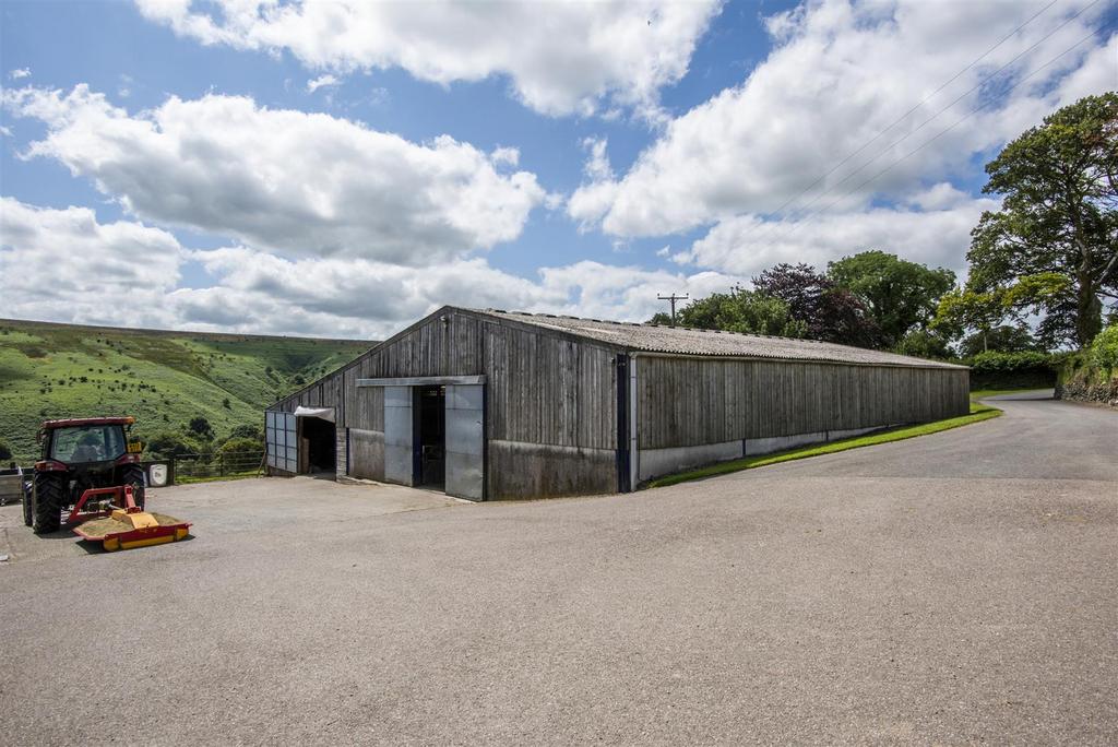 Cattle Shed No. 2: Steel frame construction with timber elevations under metal clad roof (32.35m x 15.70m gross). Feed barriers and water troughs included. Part concrete and part stone floor.