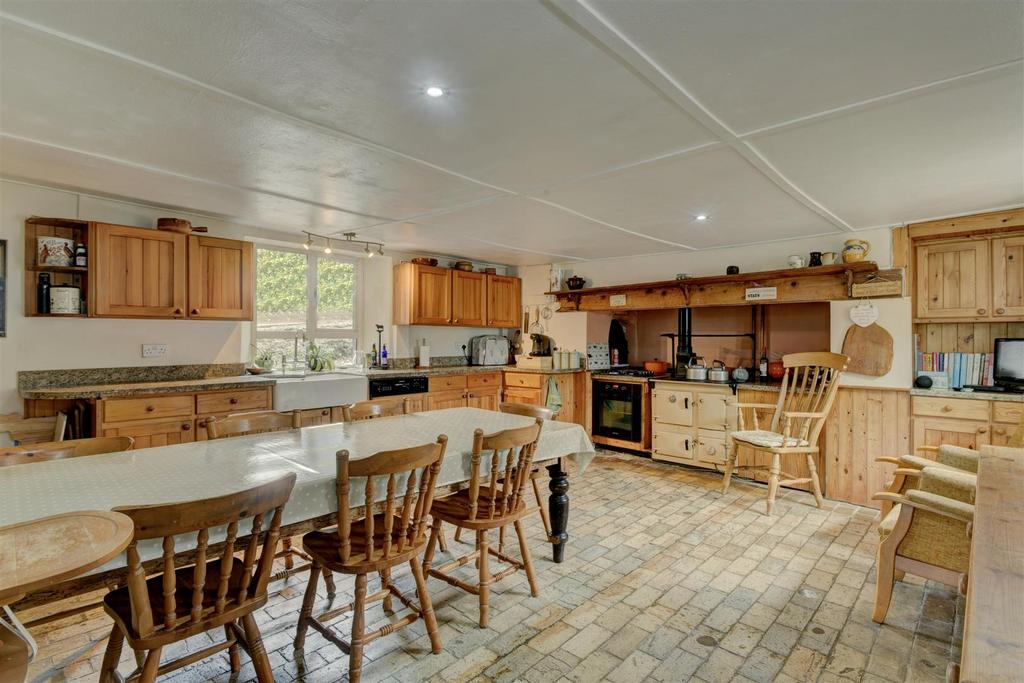 The heart of the home is the farmhouse kitchen and has a brick floor and a former inglenook fireplace an bread oven which now houses an oil-fired Rayburn range (cooking and hot water).