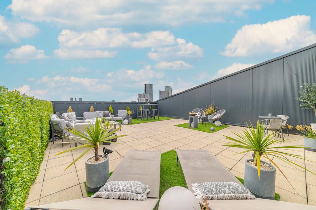 The property spans 736 sq/ft (excluding the private terrace) and comprises: communal entrance with residents lounge and concierge, lift and stairs to all floors, hallway with utility store cupboard, living room with dual aspect windows incorporating a lounge area open plan to a dining kitchen fitted with a range of wall and base units with integrated appliances, primary bedroom with fitted wardrobes and Juliette balcony, en-suite shower room, second double bedroom with built-in wardrobes and a primary three piece bathroom with shower over bath. The property also benefits from a large south facing sun terrace with views across the city centre, often used in commercial advertisements, and secure allocated parking for two cars. EPC RATING B (81). QU0TE MC0536.