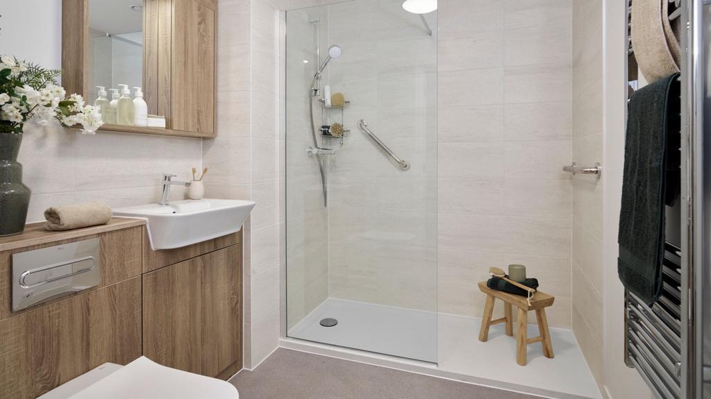 Kitchens are tiled with colour-coordinated worktops and come fully fitted with a waist-height oven, hob and upright fridge/freezer as standard. Shower rooms feature low-level shower trays and easy turn taps. Two bedroom apartments feature a separate WC or an en-suite.