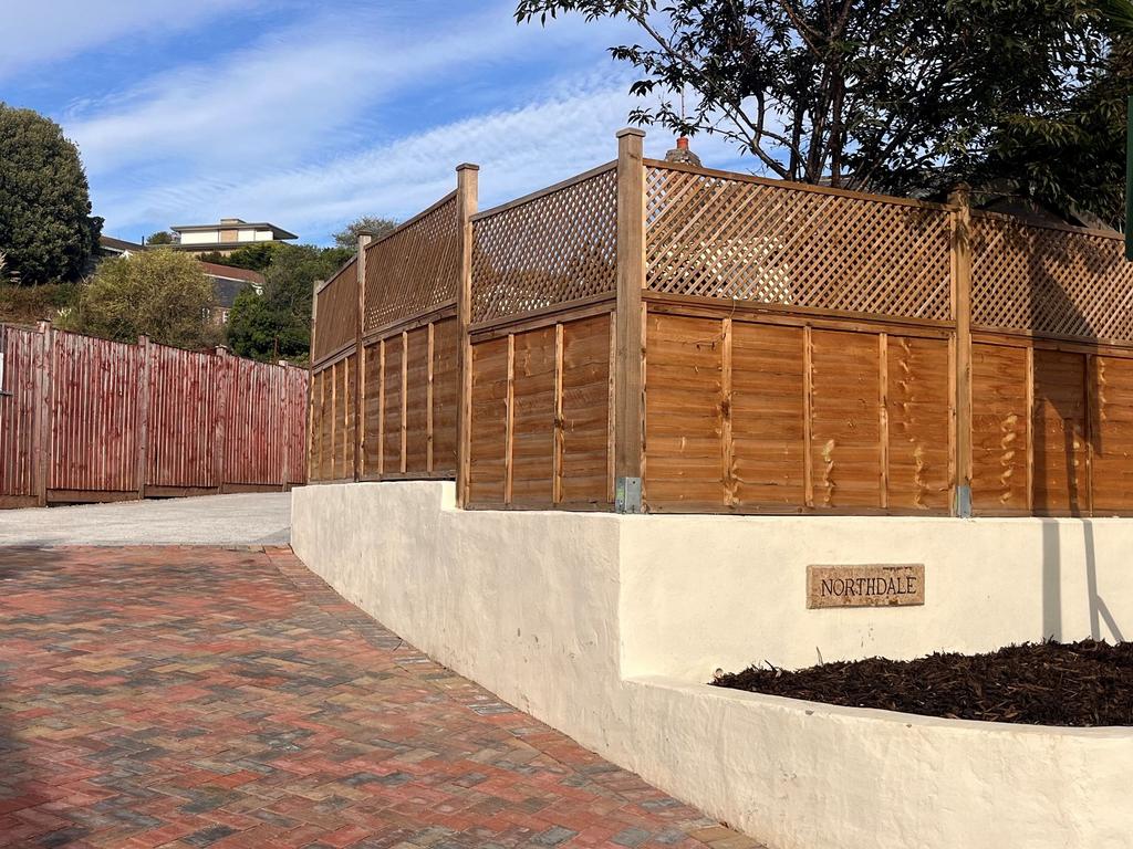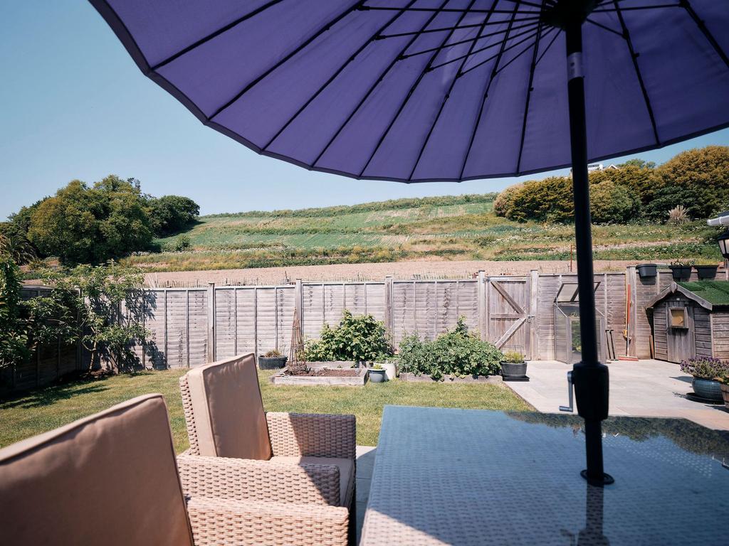Generous patio and lawn area at the front of the house, completely private and enclosed.