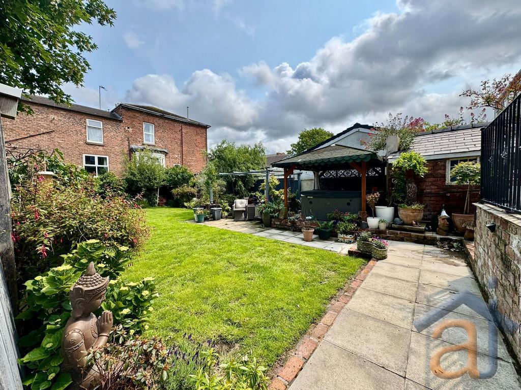 Outside, the property boasts a generous driveway with space for multiple vehicles, and a low-maintenance rear garden with ample storage and a dedicated area for a hot tub – ideal for outdoor living.