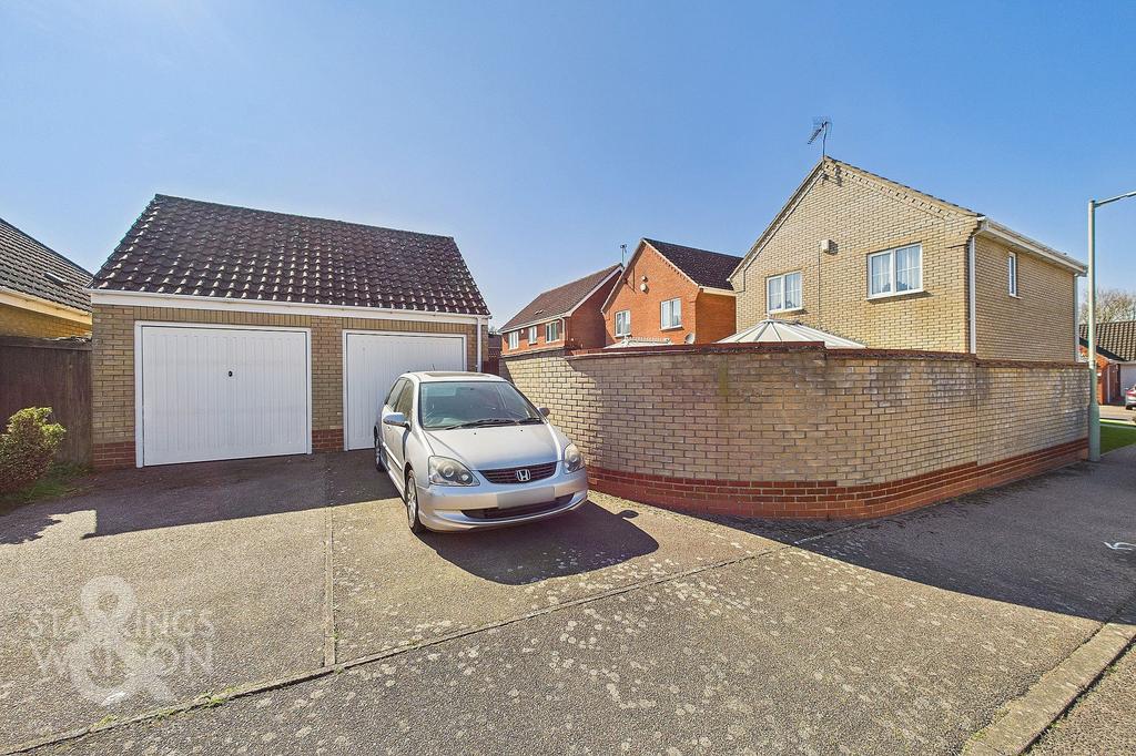 The property is approached from this quiet cul-de-sac with driveway parking and garage found at the rear of the property and handy access gate leading to the garden. The properties frontage includes a patio walkway from either side leading to the uPVC main entrance. The remaining frontage is laid to low maintenance synthetic lawn with mature shrubs and flowerbeds.