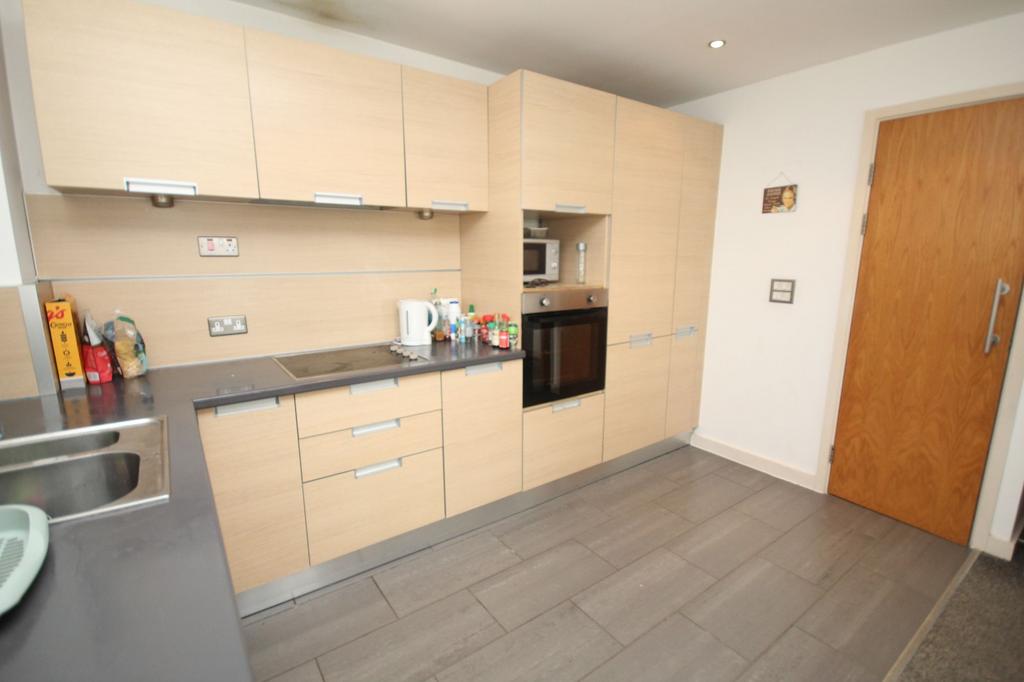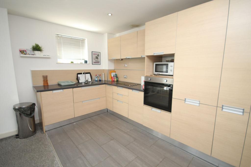 Located on the fifth floor, this stylish apartment offers contemporary living in a sought-after development near Manchester city centre. The open-plan kitchen and lounge feature floor-to-ceiling windows and access to a private balcony overlooking landscaped gardens.
