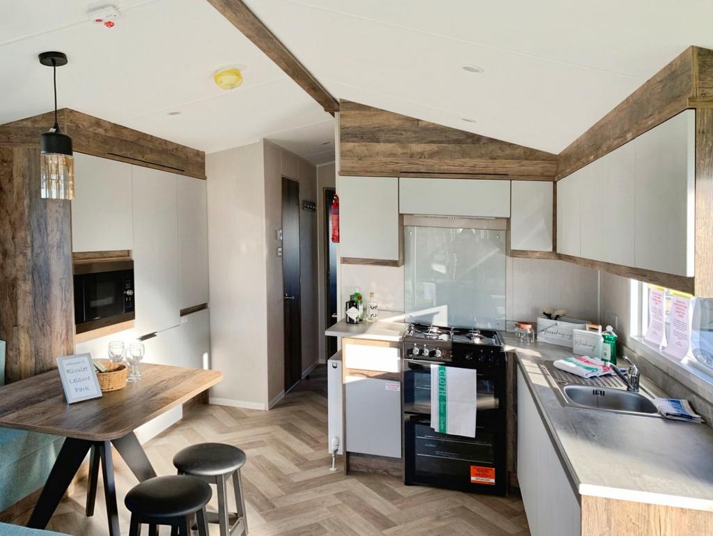 This is a five star Willerby Brookwood with many upgrades included in comparison to the standard model. These include integrated microwave, integrated fridge-freezer to replace freestanding fridge-freezer, coffee table, fabulous graphite upvc windows & beautiful grey rigid clad exterior giving the ‘lodge feel’