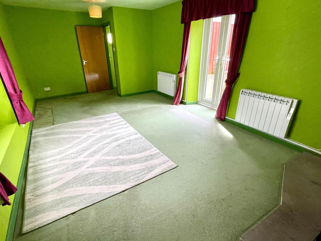Upvc French doors to garden, fireplace with wood burner, upvc window to side two electric wall heaters, door to