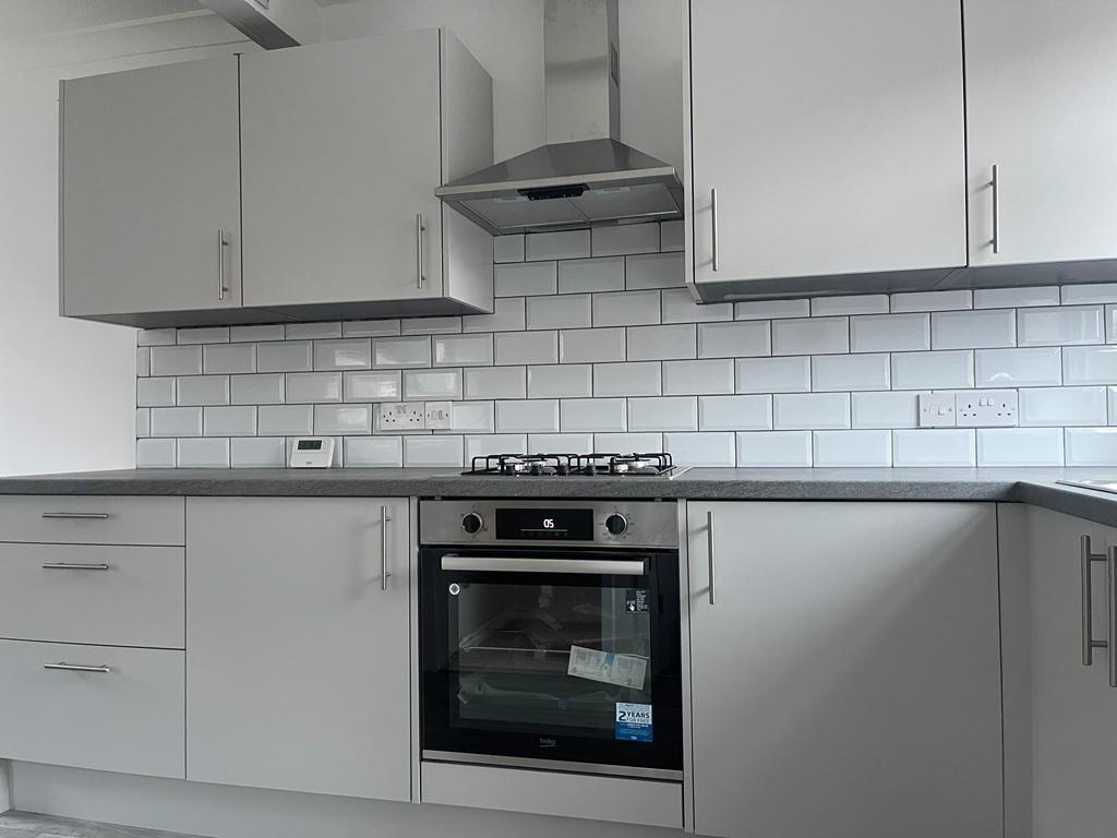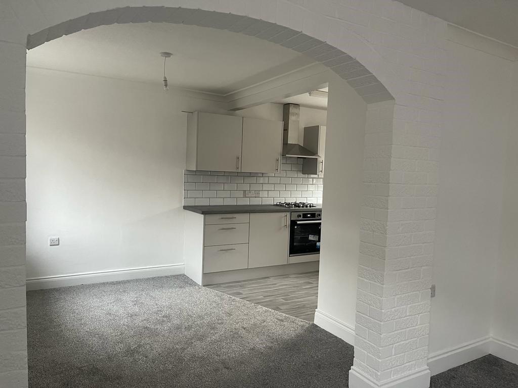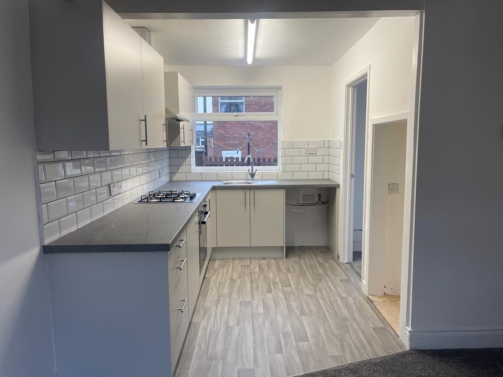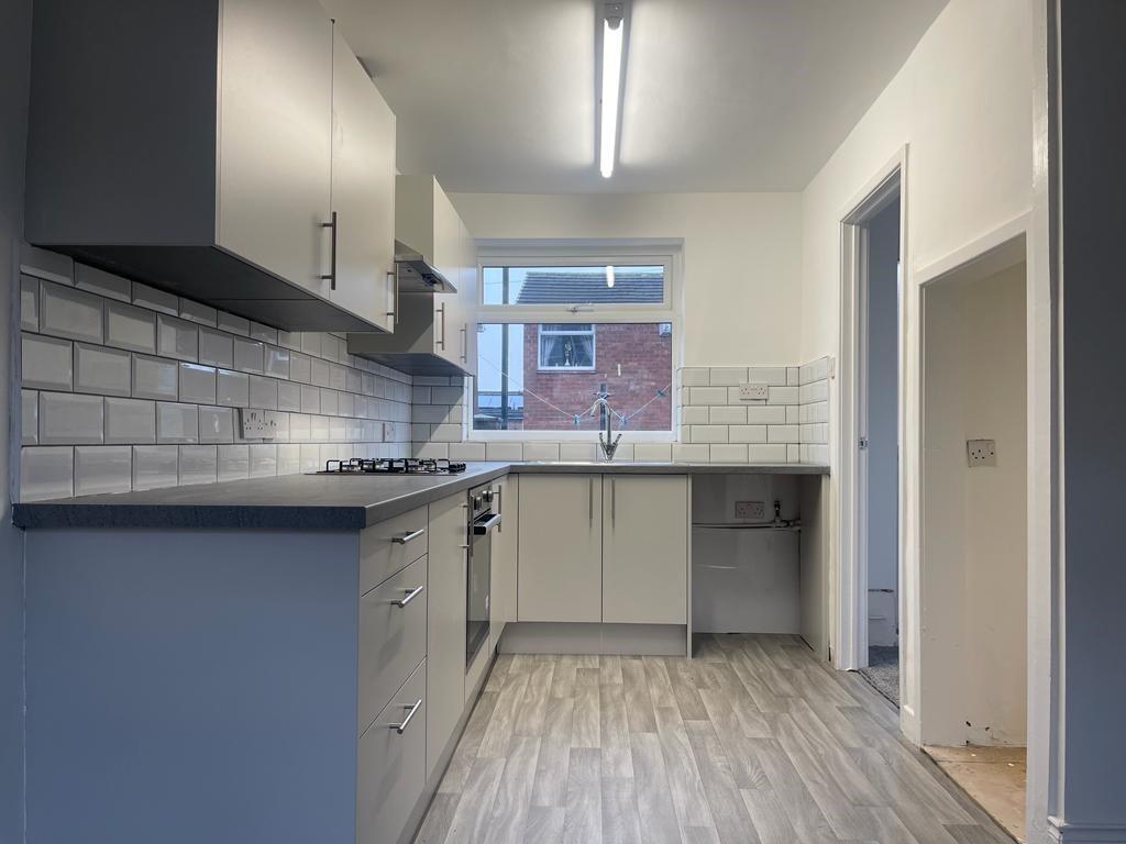 Single glazed window to front, double glazed window to rear, brand new wall and floor units, radiator, stainless steel sink and mixer tap, plumbed for automatic washing machine, oven and hob, door to lobby which has a door to the yard.