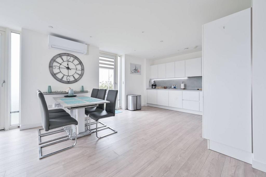This stunning 3 bed apartment boasts a spacious open plan living space leading to a private roof terrace. The property also benefits from an additional private balcony and allocated parking and on-site concierge.