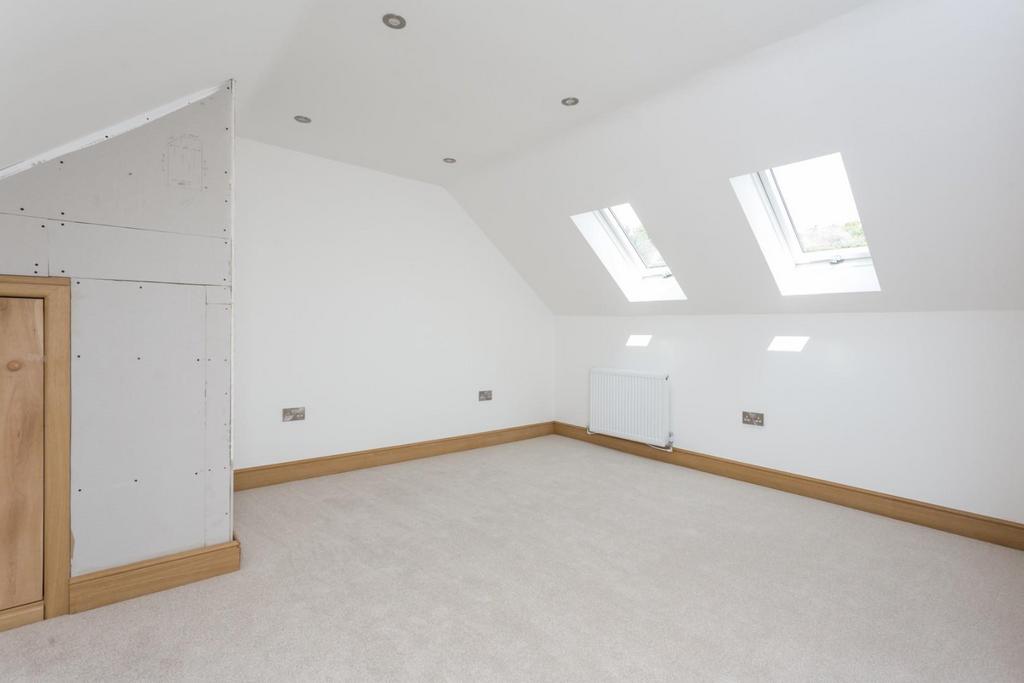 A second staircase leads to the top floor, where two further double bedrooms are located. Both rooms benefit from Velux windows that enhance natural light while maintaining privacy, and they are serviced by a second stylish house bathroom. This floor provides a perfect space for older children, guests, or even a private work-from-home area.