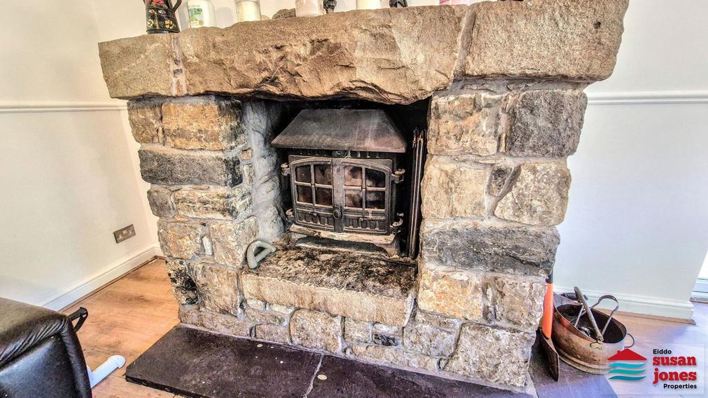 Stone fireplace with multifuel stove. uPVC double glazed windows and door to outside.