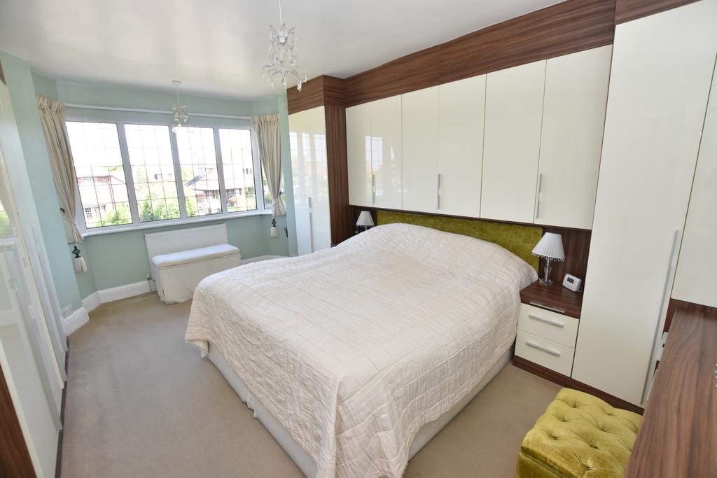 BEDROOM FOUR 17' 0" x 12' 2" (5.18m x 3.71m) Measurements include a range of bespoke fitted wardrobes with high gloss and wood finish, double glazed light window to front, double radiator