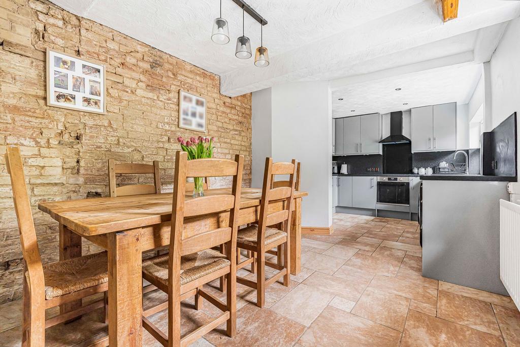 Fitted with a range of modern units with windows overlooking the rear garden, the kitchen / diner has plenty of space for a dining table and an exposed brick wall and timber beam providing plenty of character.