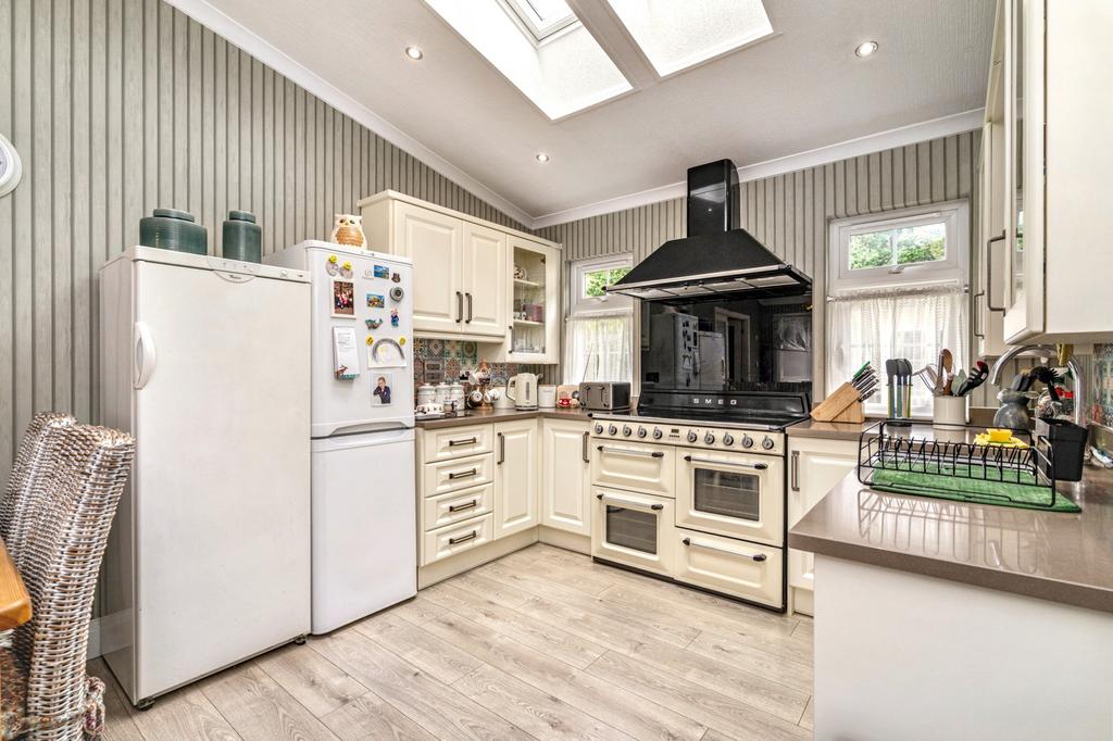 This pre-owned, modern, luxury Omar Heritage (50'x20') park home is perfect for those looking for a detached, easy-to-maintain, bungalow-style property. The home has a spacious kitchen with a vaulted ceiling, sky light and dining area. The living room has large windows and an electric fireplace. The home also has a study and utility room. The master bedroom has a walk in wardrobe and an en suite shower room. There is a second double bedroom and a bathroom. The exterior has a large enclosed garden area with a terrace and a driveway that can fit 3 cars.