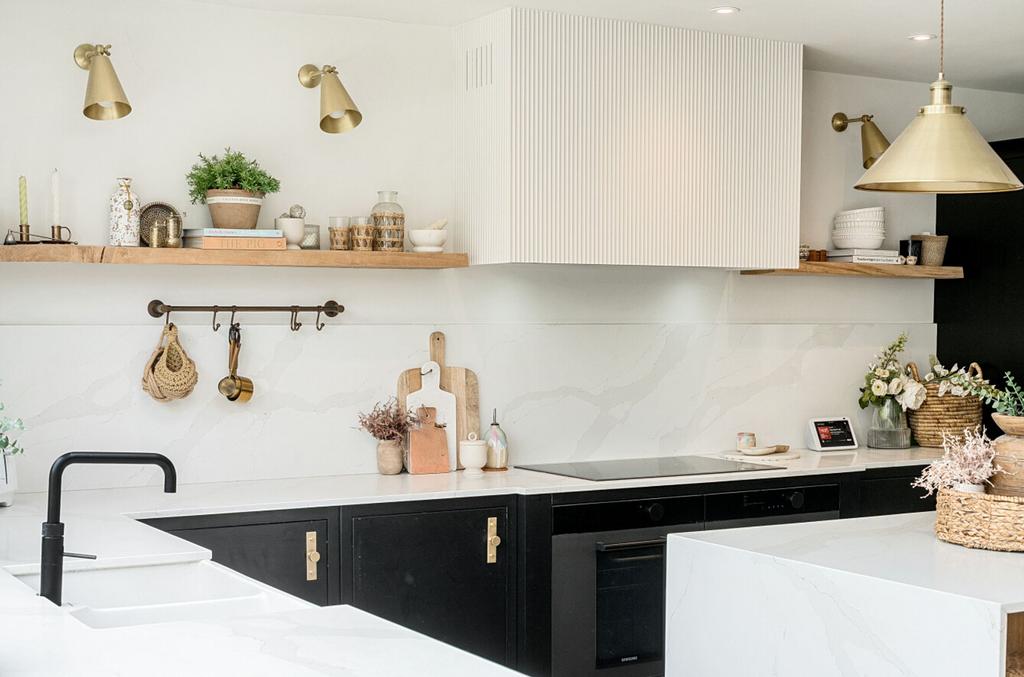 At the heart of the home lies a spectacular open-plan kitchen, dining and living area—bathed in natural light, with underfloor heating throughout and designed for effortless entertaining. The kitchen is finished to an exceptional standard, with sleek stone countertops, dark bespoke cabinetry, a Quooker tap, macerator, and high-end integrated appliances. A walk-in, custom-fitted pantry adds a charming and practical touch, housing a drinks fridge and secondary dishwasher.