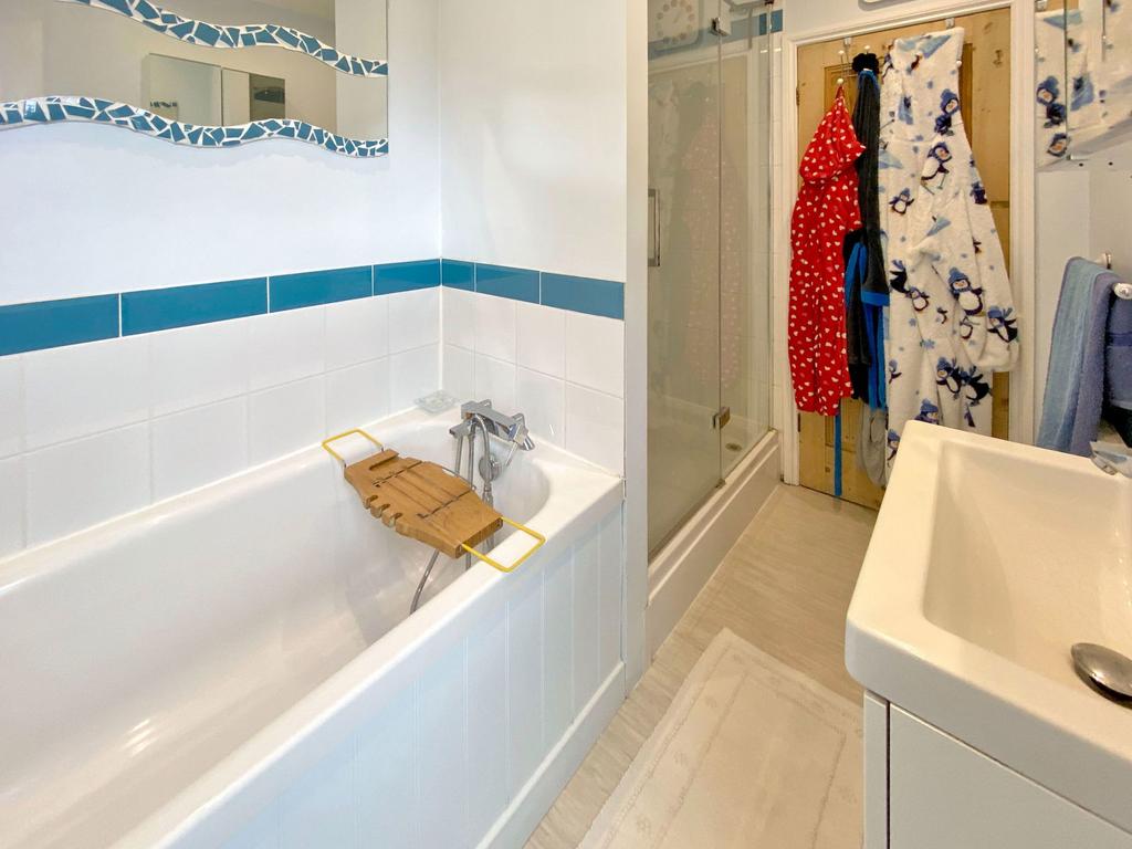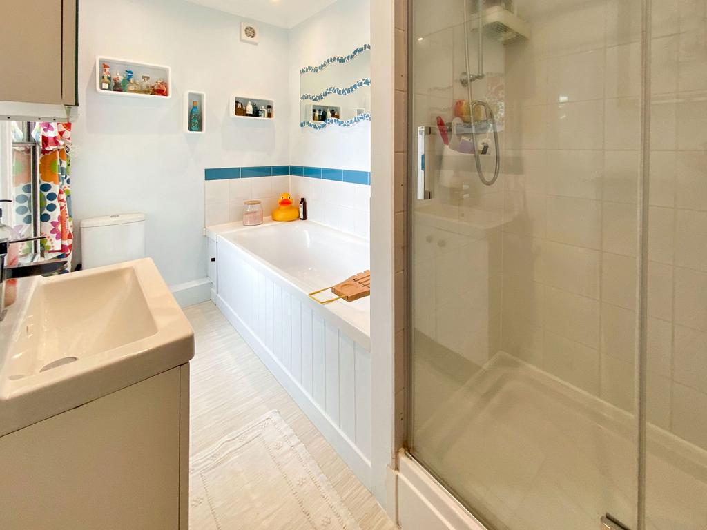 - Family bathroom with shower and bath