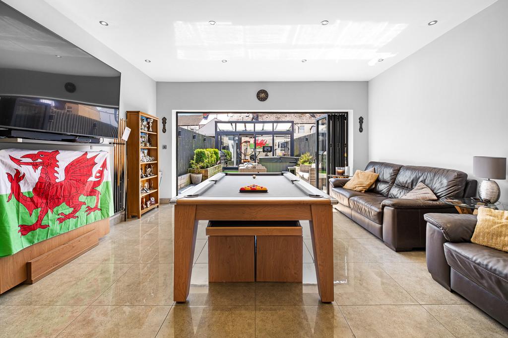FAMILY ROOM 16' 0" x 15' 1" (4.89m x 4.61m) Continuation of tiled flooring with underfloor heating. Spotlights. TV point. Power points. Double glazed bi-folding doors leading to rear garden and summer house.