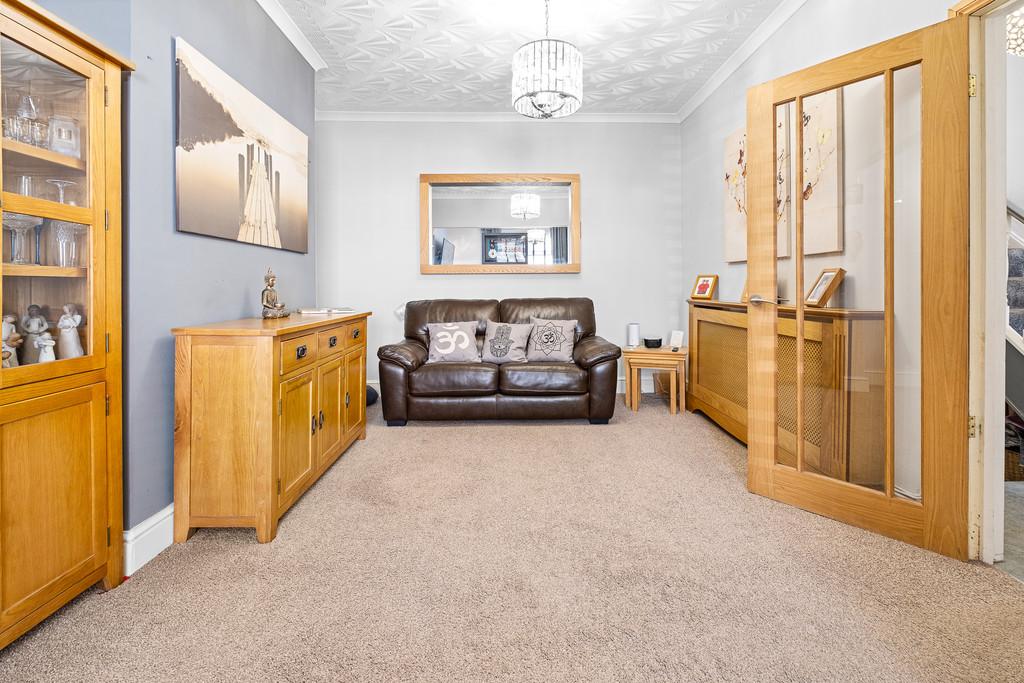 LIVING ROOM 22' 8" x 13' 7" (6.93m x 4.15m) Carpet to floor. Double glazed uPVC window to front aspect with fitted blinds. Pendant light fittings. Radiator. Power points. TV and telephone point.