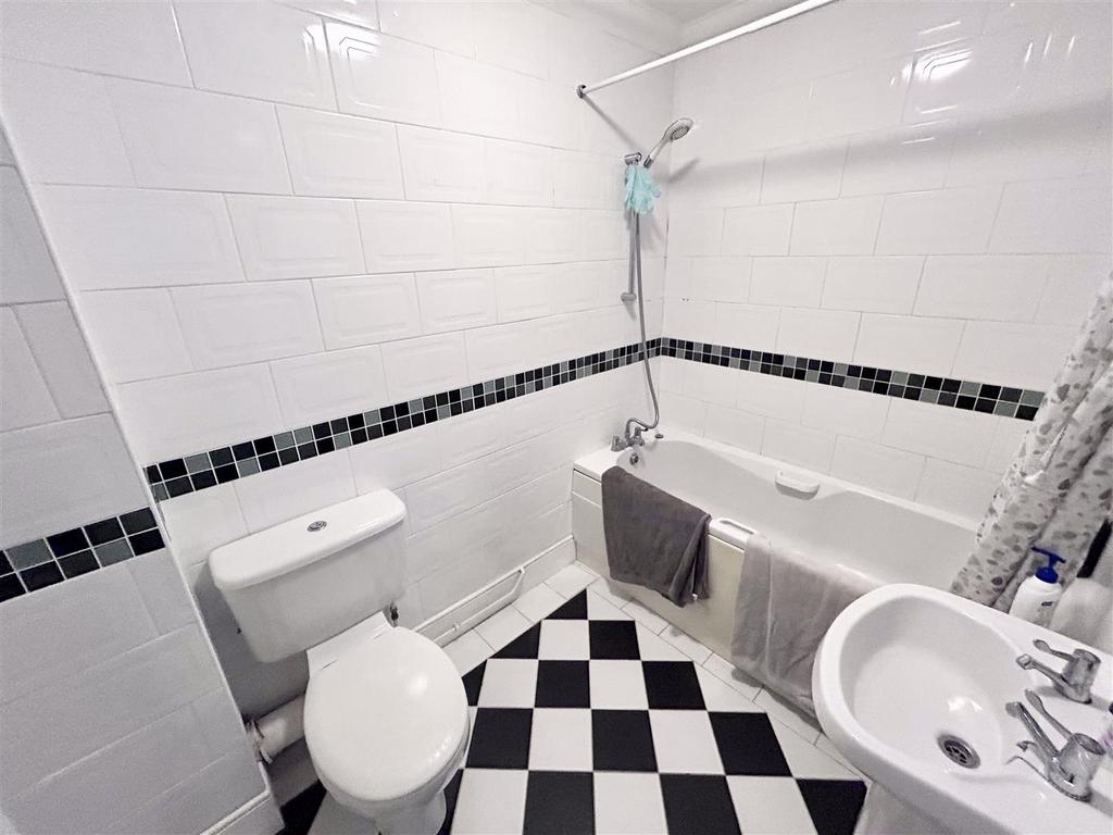 Family Bathroom - 6' 7'' x 5' 3'' (2m x 1.60m) - Tiled flooring. Fitted-bath with over head shower. Sink & WC.