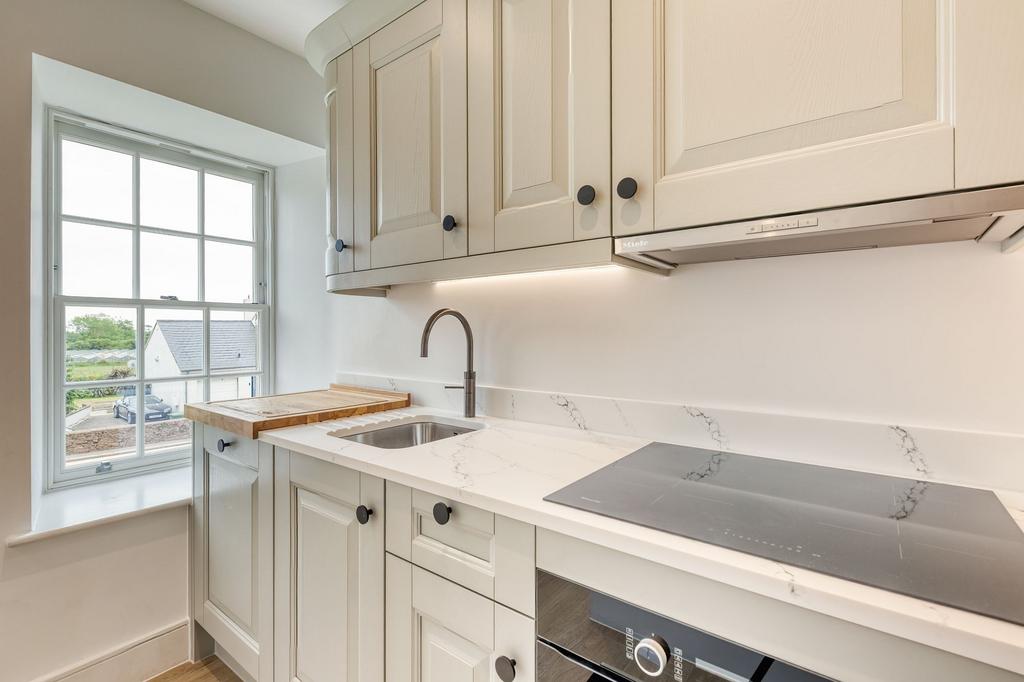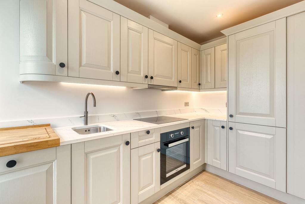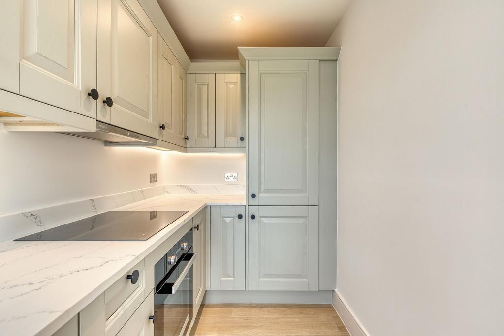 This elegant apartment features painted Laura Ashley kitchens, complete with Pietra worktops with undermounted sinks and moulded draining boards, integrated MIELE appliances which includes, induction hob, extractor fan, microwave, full height split 70-30 fridge-freezer and dishwasher. The luxurious bathroom is fitted with premium Villeroy & Boch sanitaryware, underfloor heating, and a heated towel rail for added comfort.