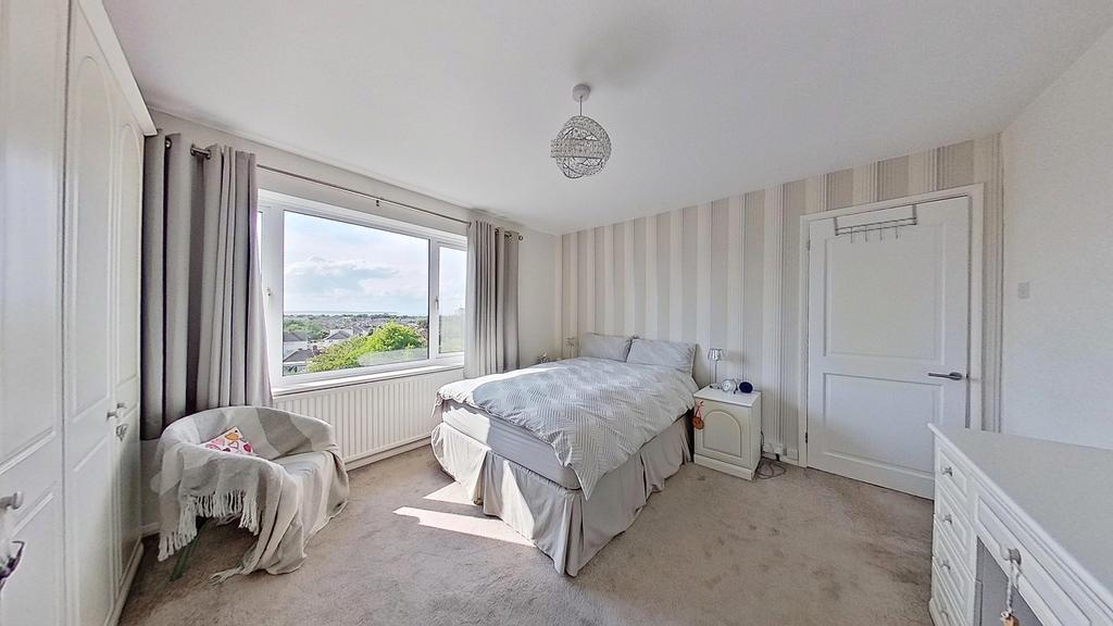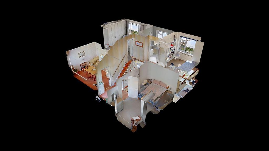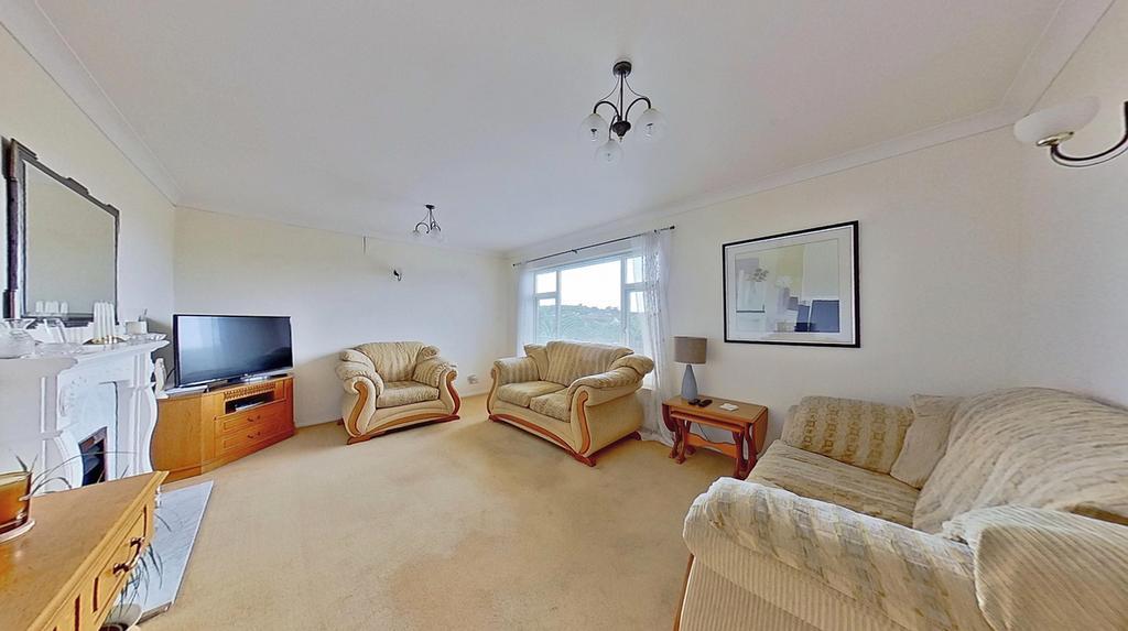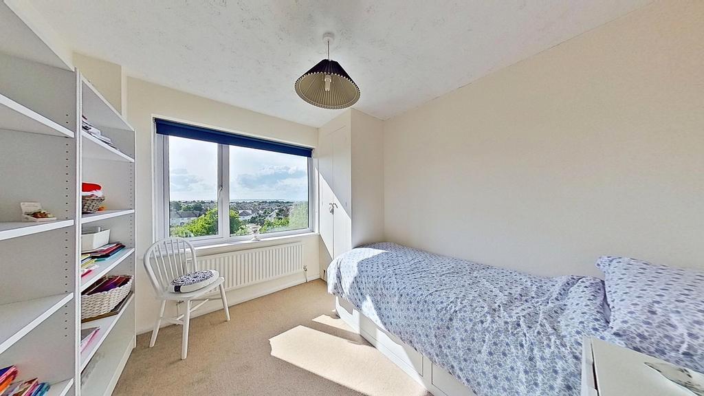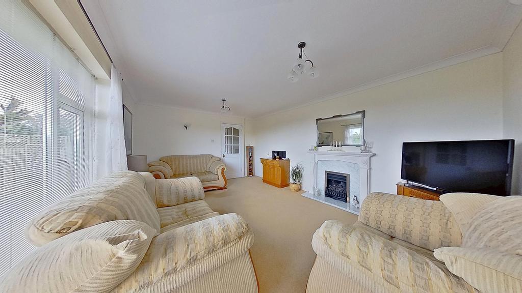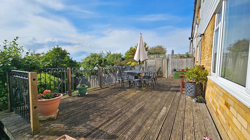 As you enter the property, you'll find a bedroom on either side of the hallway—one currently arranged as a dining room, offering flexibility to suit a variety of needs. A short flight of stairs leads down to the lower level, where a generously proportioned lounge sits to the left, and a spacious kitchen/breakfast room to the right. The kitchen opens onto a raised decking area, perfectly positioned to enjoy the outlook to the sea and steps down to a private rear garden.
