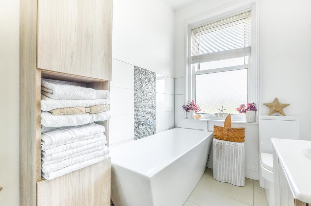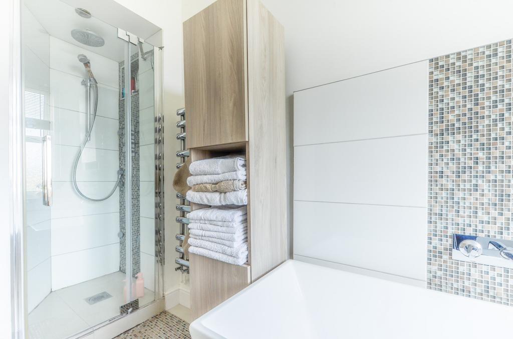 The bathroom is has been remodelled to include not only a free standing bath, but a separate shower enclosure, with thermostatic rainfall and jet outlets. The bathroom also features a double glazed opaque window to the rear aspect vanity unit with inset wash basin, heated towel rail, tiled flooring and low level w/c.