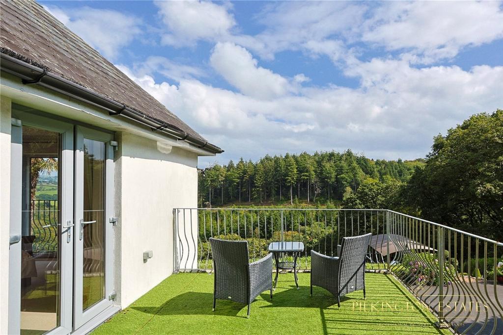 The property is approached via a quiet parish lane leading to a private tarmac drive that descends to the farmhouse, cottages, a large stable block/tractor shed with an enclosed workshop, two greenhouses, and a log store. The farmhouse overlooks a serene valley, offering sweeping views of the surrounding land, which is adorned with vibrant mature shrubs and trees, including azaleas, palms, and a monkey puzzle tree. A thoughtfully designed covered platform with a woodburner provides an inviting space for outdoor dining and entertaining, with uninterrupted rural views and opportunities to observe the local wildlife. Sivel Wood encompasses approximately 13 acres of deciduous forest, with two circular walking trails that offer a glimpse into the area’s rich history, including the remnants of an 1857 silver-lead mine. Behind the property lies approximately 8 acres of well-fenced pasture, ideal for horses or livestock. In total, the property spans approximately 23 acres. EPC : C