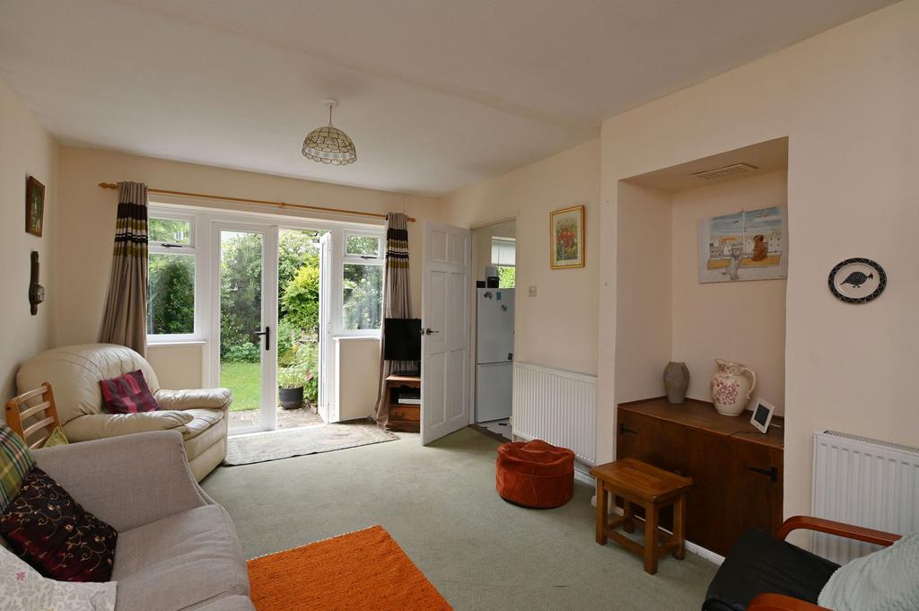 The main door, which is located to the side of the bungalow provides access to a hallway. Off this is the sitting/dining room, two bedrooms and bathroom. Both the bedrooms can be used as doubles and have windows overlooking the front garden. The bathroom comprises a bath with shower above and glazed screen, WC, hand wash basin and storage cupboard with slatted shelving. The sitting/dining room has French doors flanked on both sides opening up to the rear patio and garden. A door leads to a kitchen that has high and low level wall units and worktops with a sink. There is space and plumbing for a washing machine and fridge freezer as well as an integrated electric oven with four ring gas hob above. The kitchen has a window overlooking the rear garden and a door to the exterior. In addition is a built in cupboard which is home to the gas fired combi-boiler.