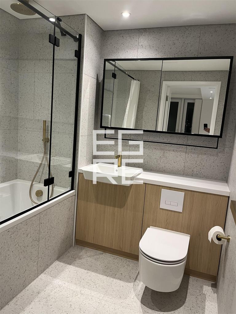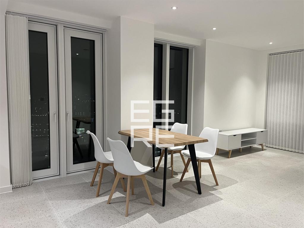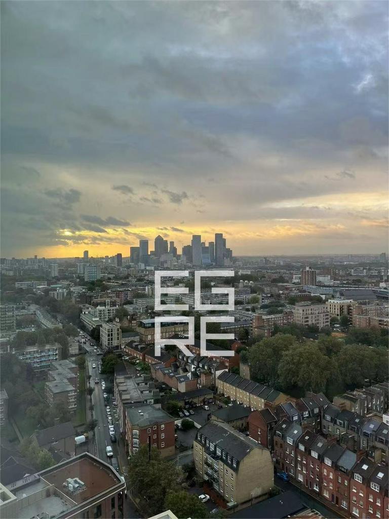 Spanning approximately 570 sq ft, the apartment features a well-proportioned open-plan living and dining area, a sleek modern kitchen with integrated appliances, a double bedroom, and a high-spec bathroom. Floor-to-ceiling windows allow for excellent natural light and far-reaching views across London-s skyline.
