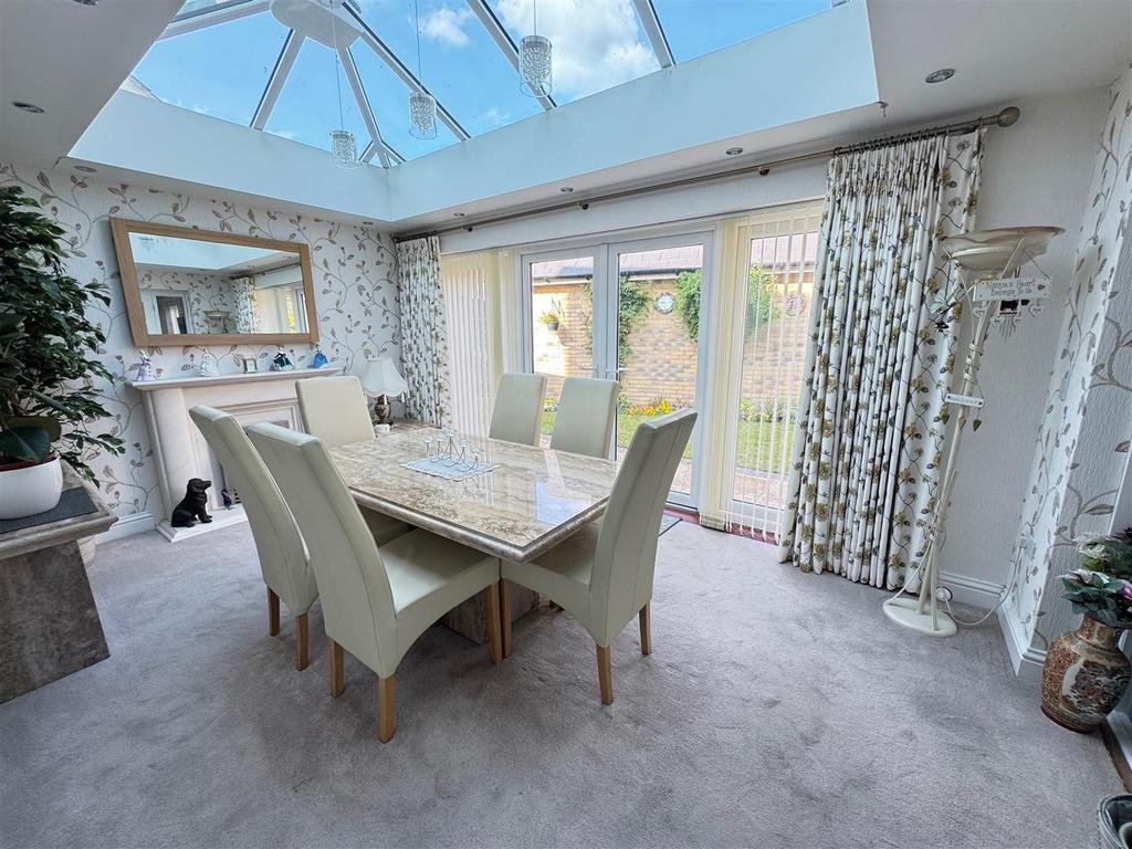 Orangery - 5.05m x 3.35m (16'7 x 11) - UPVC double glazed French doors & side windows, large roof lantern with pelmet lighting, feature fireplace, power & Tv points.