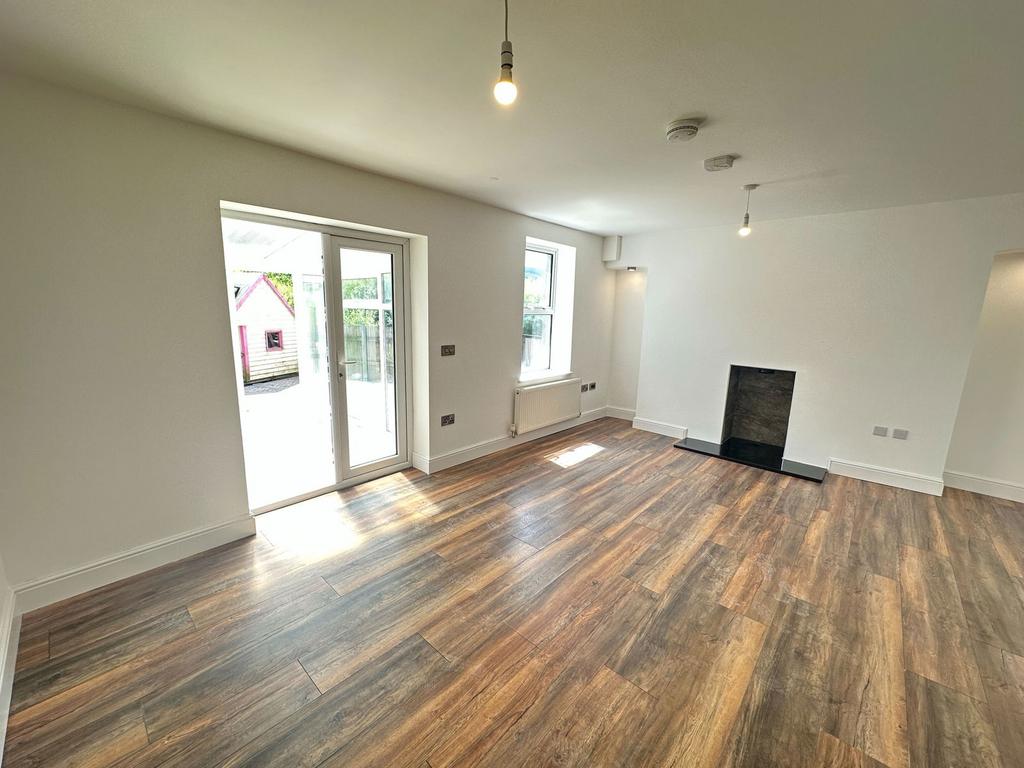 Double glazed French doors and double glazed window to rear, laminate floor, feature fireplace, feature alcoves with spotlights, double panel radiator.