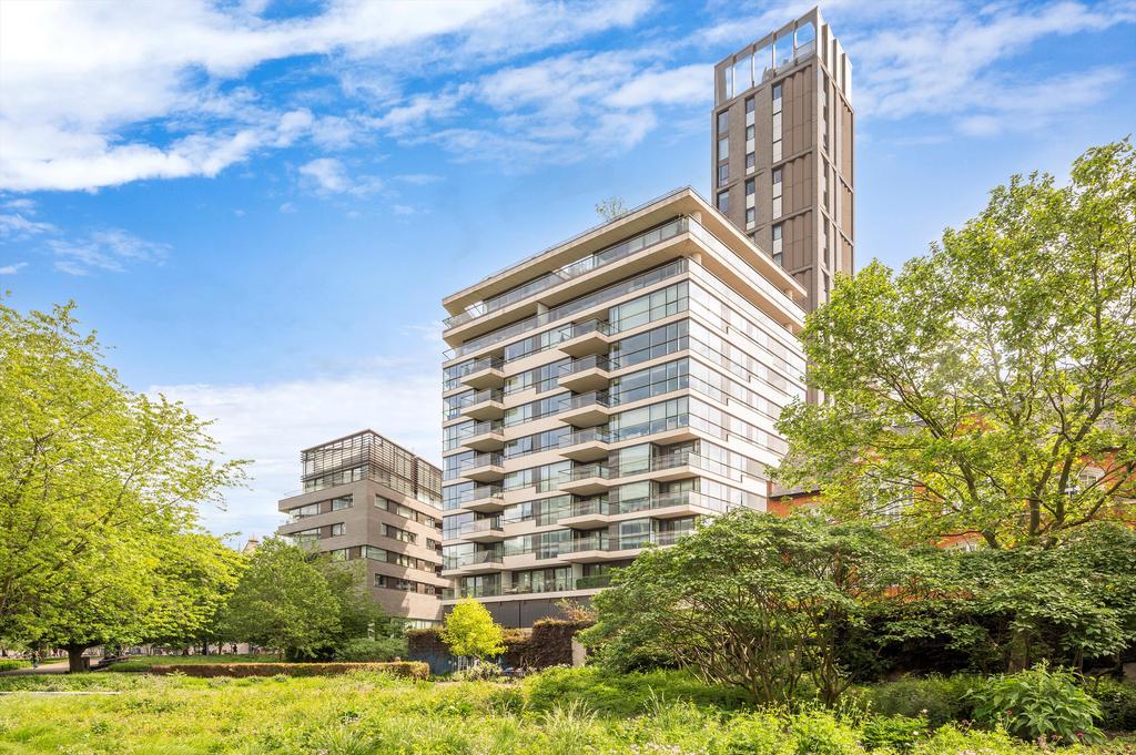 The bright and spacious open-plan reception, dining, and kitchen area features floor-to-ceiling glazing, allowing for excellent natural light and direct access to a private balcony — perfect for relaxing or entertaining.