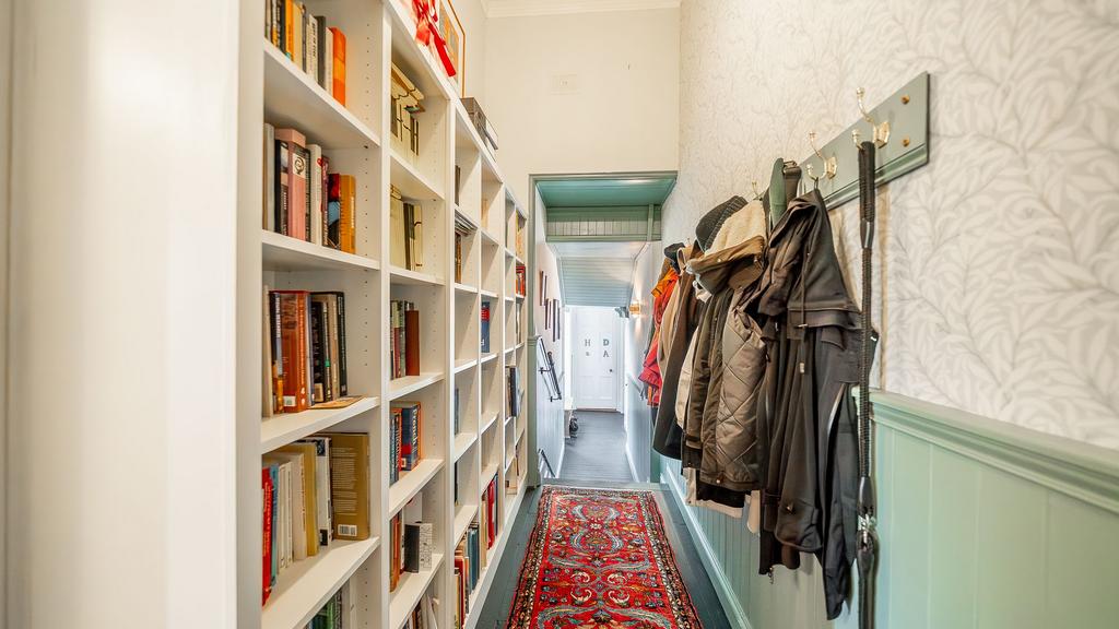 On entering from Queen Street, an attractive shared tree lined driveway leads up to the property and splits in two with the right hand fork taking you up to a gravelled parking area at the side of the building. From here there is access to a substantial integral garage and to the right of this are the private gardens for 20A that feature a large lawned area, colourful bedded borders, all enclosed by mature trees, bushes, shrubs and hedging. There is a timber summer house included in the sale.