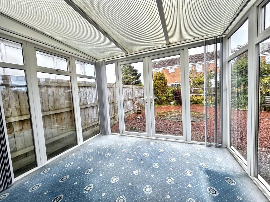 Double glazed window, central heating radiator, glazed door to conservatory.