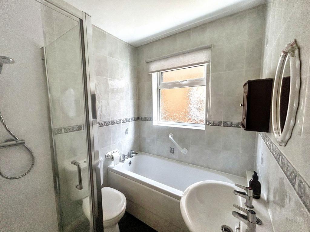 Fitted with, panelled bath, hand wash basin, low level wc, shower cubicle, Double glazed window, central heating radiator.