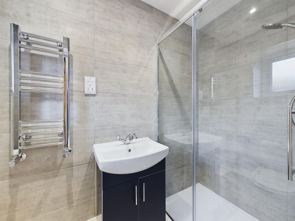 Generous double bedroom with space for freestanding or fitted furniture. TV/satellite point. Central heating radiator. Ceiling spotlights. Double glazed window to the front aspect. Door through to en-suite shower room.