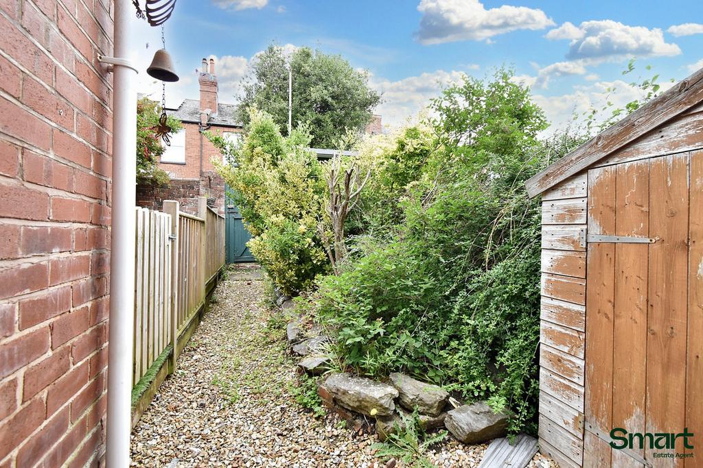 To the rear, a private, enclosed garden offers a low-maintenance space with paved areas and a timber decked seating spot, ideal for relaxing outdoors. A rear gate opens onto a convenient access lane, useful for those with bicycles.