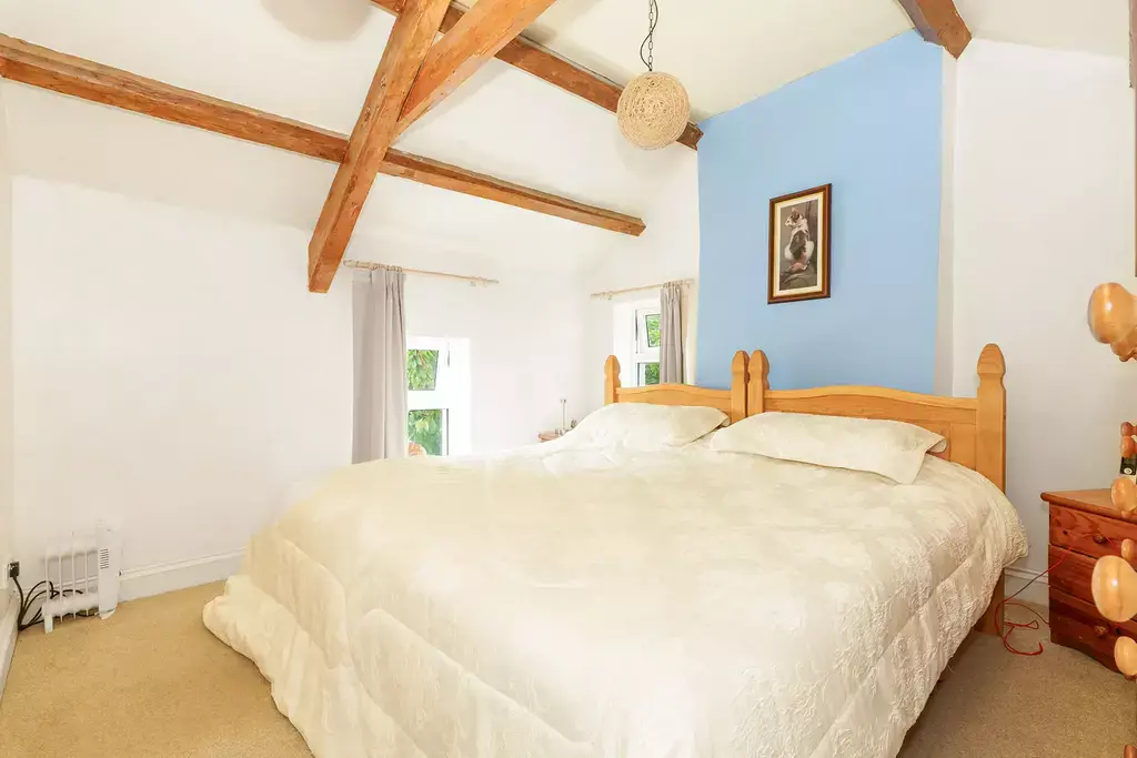 Adjoining the main house is The Blacksmith’s Cottage, a 4-star Gold rated holiday let . This beautifully converted annex is ideal for generating supplementary income as a holiday let, or as accommodation for a multi-generational family (subject to any necessary approvals). The cottage features an impressive open-plan living, dining, and kitchen area with stunning exposed beams and a log burner, creating a cosy and welcoming atmosphere. There is also a separate double bedroom and an ensuite shower room, all finished to a high standard.