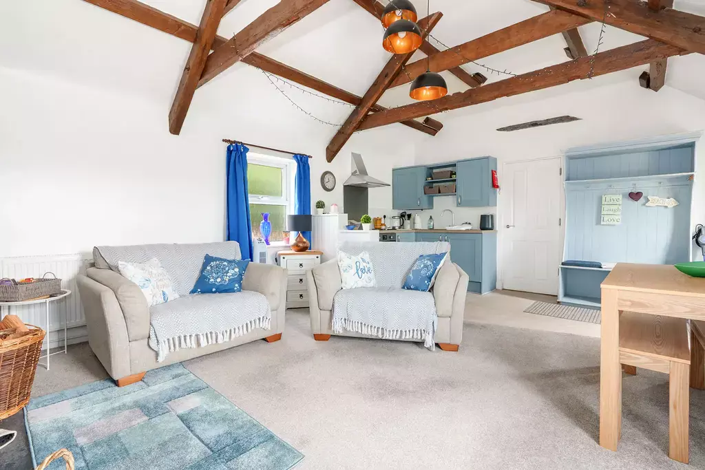- Holiday let accommodation comprises a impressive and characterful open plan living dining kitchen with exposed beams and log burner, there is a separate double bedroom and ensuite shower room