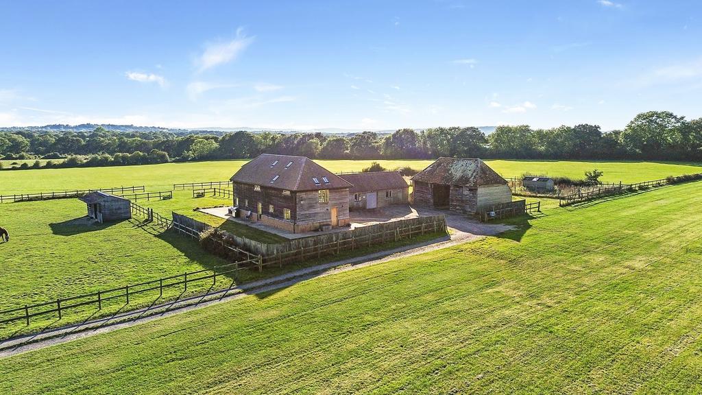 In the heart of a picturesque rural landscape, this exceptional 3-bedroom detached house offers a unique living experience. The striking oak framed barn style property, meticulously designed by its owners, boasts a high level of craftsmanship and attention to detail. Situated amidst expansive open pasture land, the residence provides unmatched views of the breathtaking South Downs, bringing nature's beauty right to your doorstep. The modern open plan layout of the first floor seamlessly integrates the living spaces, capitalising on the panoramic vistas that surround the property.