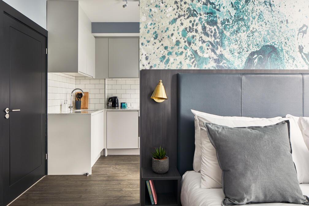 Our spacious Premium Studios offer a UK double bed, a private en-suite bathroom, a kitchenette and a seating area. They also feature floor-to-ceiling windows so you can enjoy your own little piece of the city skyline.