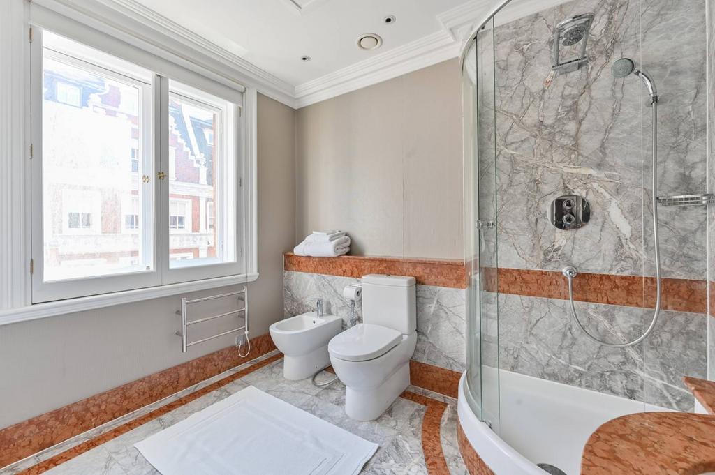 LONG LET. Set in a striking period building opposite Kensington Gardens and Hyde Park, this truly impressive 6 bedroom apartment features sumptuous décor, high ceilings, en suite facilities and an exceptionally generous interior.