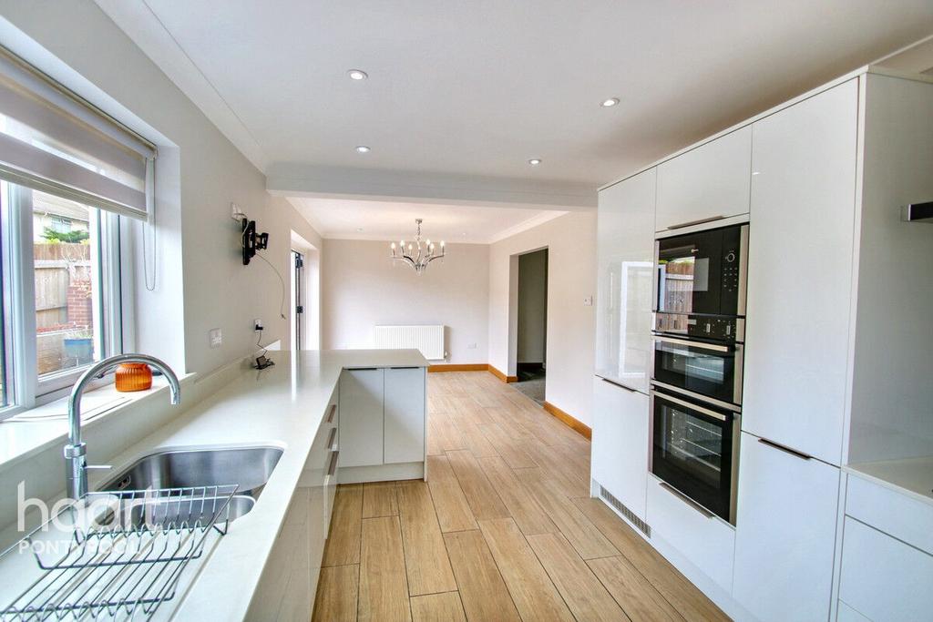Step inside to a spacious entrance hall that sets the tone for the rest of the home. The ground floor features a convenient downstairs WC and a staircase that leads you to the first-floor landing and additional accommodations. The heart of this home is the fantastic kitchen-dining room, equipped with modern amenities and adorned with tri-fold doors that open onto a paved rear terrace, perfect for outdoor entertaining. A squared archway leads into the generous living room, where large double-glazed windows provide picturesque views of the front gardens, filling the space with natural light.