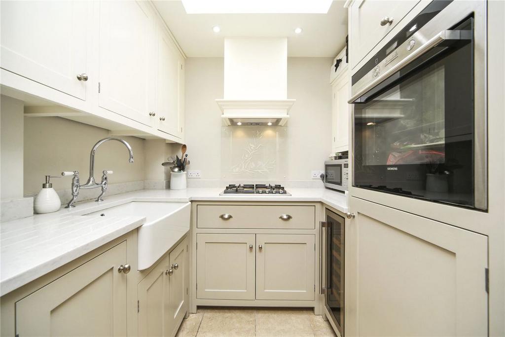 Accommodation comprises generous reception room with direct access to a south facing roof terrace and views over church and communal gardens, separate fully fitted kitchen, two double bedrooms and bathroom.