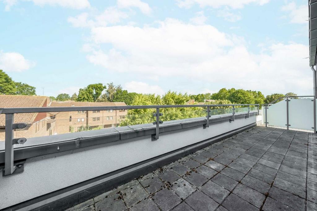 Boasting a high-quality finish throughout, built-in wardrobes and a washing machine included, the apartment is positioned on the third floor of a purpose-built development with views of the central London skyline. Residents benefit from an allocated off-street parking space with an electric charging point, as well as secure bike storage accessible by fob.
