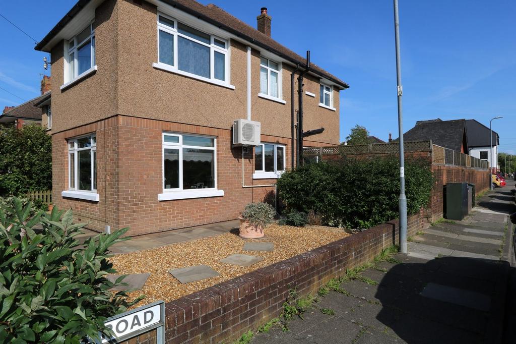This property was last offered to the open market in 1980 and is now available once again, 45 years later. Many improvements have been made since this time including a well-stocked landscaped garden, a replacement fitted kitchen with fitted appliances and Minerva work tops, air-conditioning and a lovely log burner. Sitting on a large corner plot this spacious, light and airy family home comprises entrance porch, entrance hallway, an open-plan sociable kitchen space with dining and sitting area, cloakroom/WC, a main sitting room, three first floor bedrooms and a family shower-room. The loft is ripe for conversion to provide a fourth bedroom and en-suite (subject to the usual consents). Outside is a front, side and rear garden with an attractive storage shed, office and driveway. The property enjoys UPVC windows, patio doors, some original woodblock flooring and gas central heating. Nearby amenities are within easy walking distance.