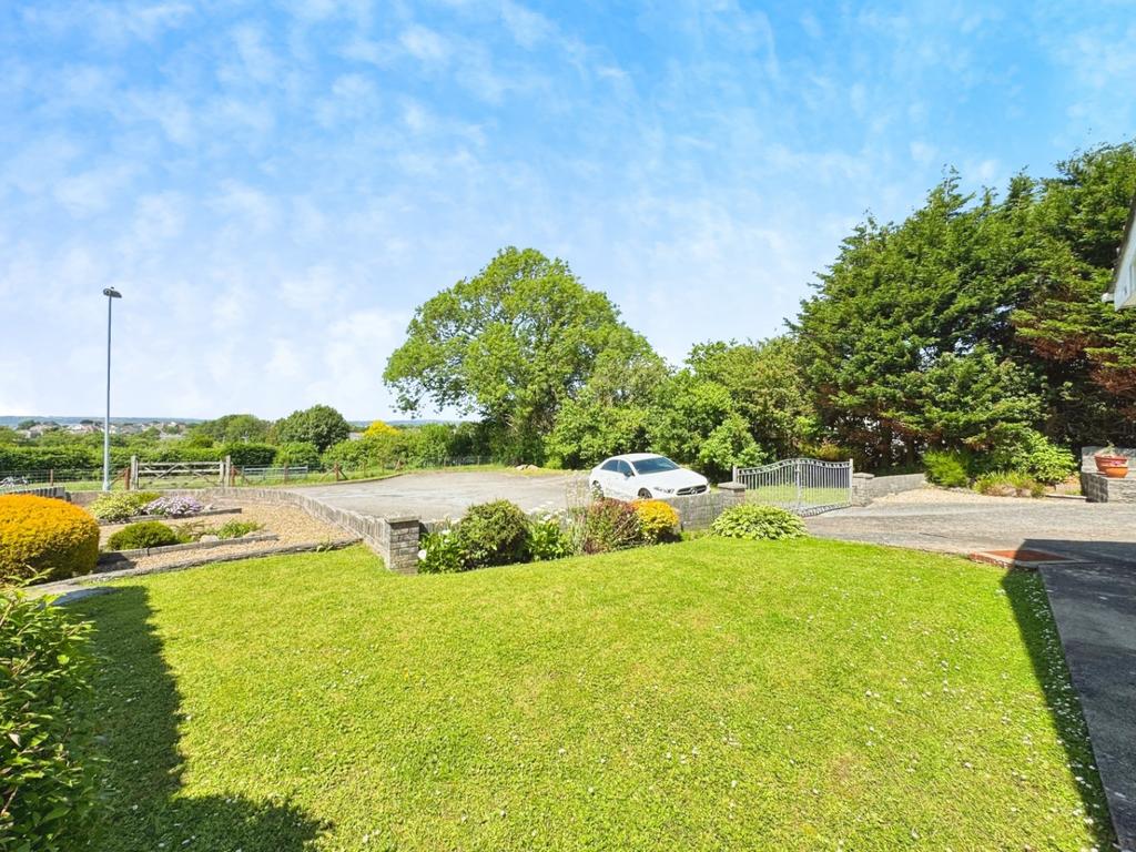 To the rear of the property there is an enclosed wrap around garden featuring areas of lawn space, patio and a range of mature shrubs, and hedge borders. The home backs onto Llanmorlais playing fields and features views of the beautiful greenery and benefits from sunny south facing garden.