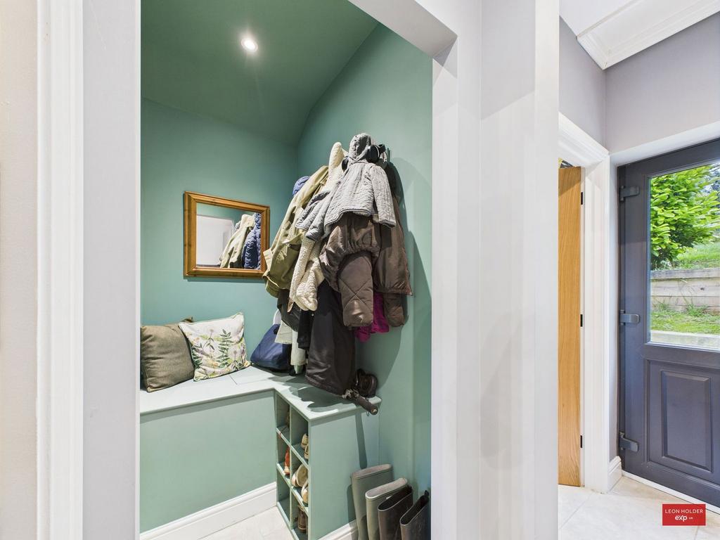 A welcoming entrance hall sets the tone, leading to a generous, light-filled living room centred around a striking log burner fireplace—perfect for cosy evenings and relaxed gatherings.